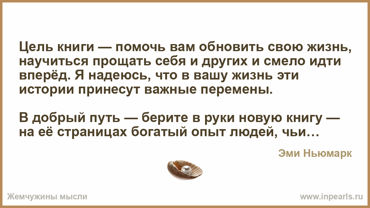 Цель книги — помочь вам обновить свою жизнь, научиться прощать себя и других и смело идти вперёд. Я надеюсь, что в вашу жизнь эти истории принесут важные перемены.