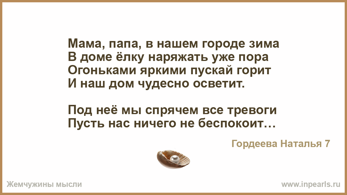 Папа дома, дома-мир И всегда порядок, Он для нас большой кумир В доме с ним достаток!