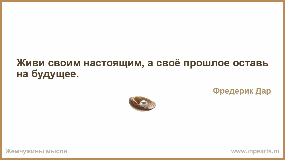 Живи настоящим, а своё прошлое — оставь на будущее. __________