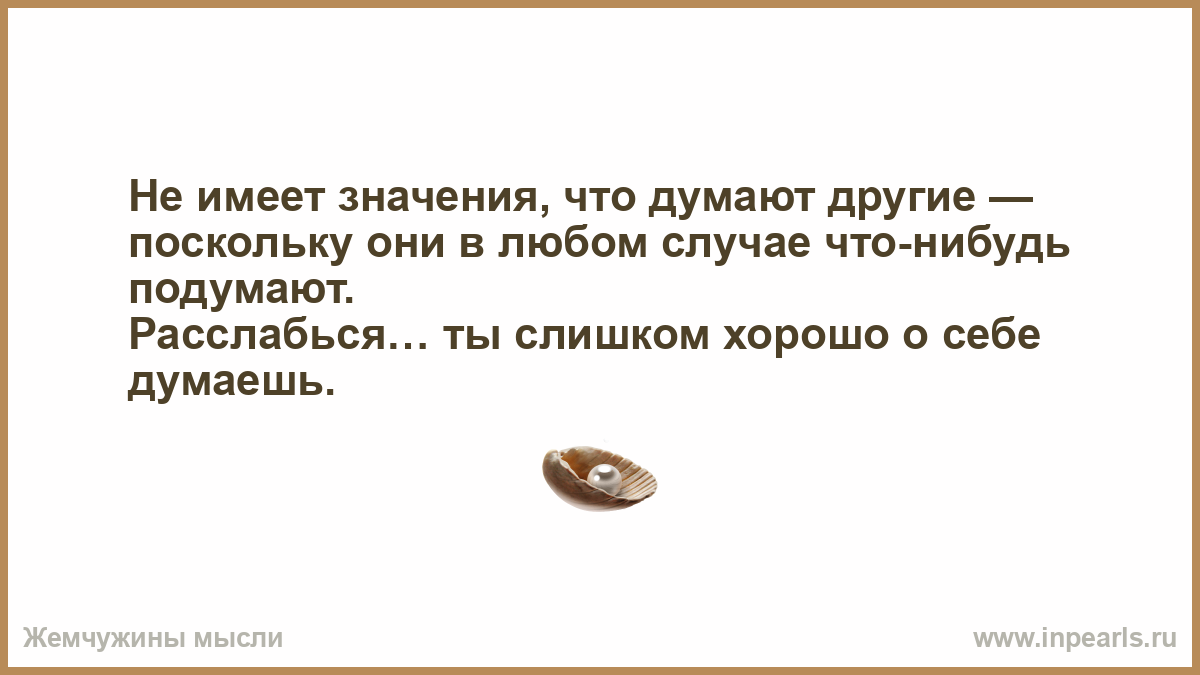 Не имеет значения, что думают другие — поскольку они в любом случае что-нибудь подумают.