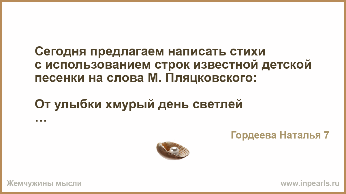 Сегодня предлагаем написать стихи с использованием строк известной детской песенки на слова М. Пляцковского: