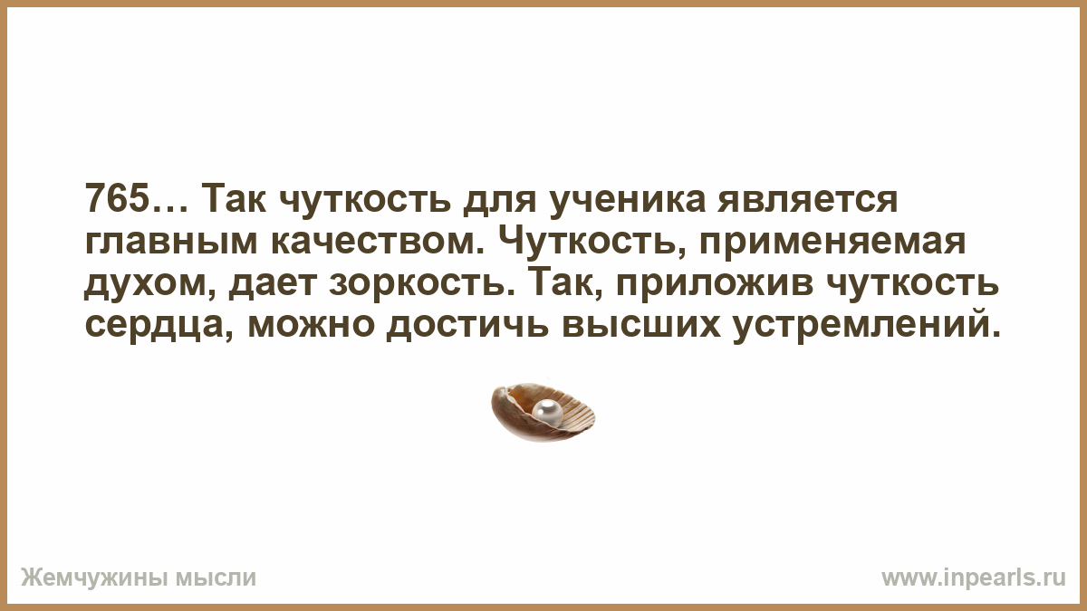 765… Так чуткость для ученика является главным качеством. Чуткость, применяемая духом, дает зоркость. Так, приложив чуткость сердца, можно достичь высших устремлений.