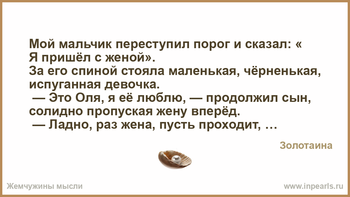 Мой мальчик переступил порог и сказал: « Я пришёл с женой».