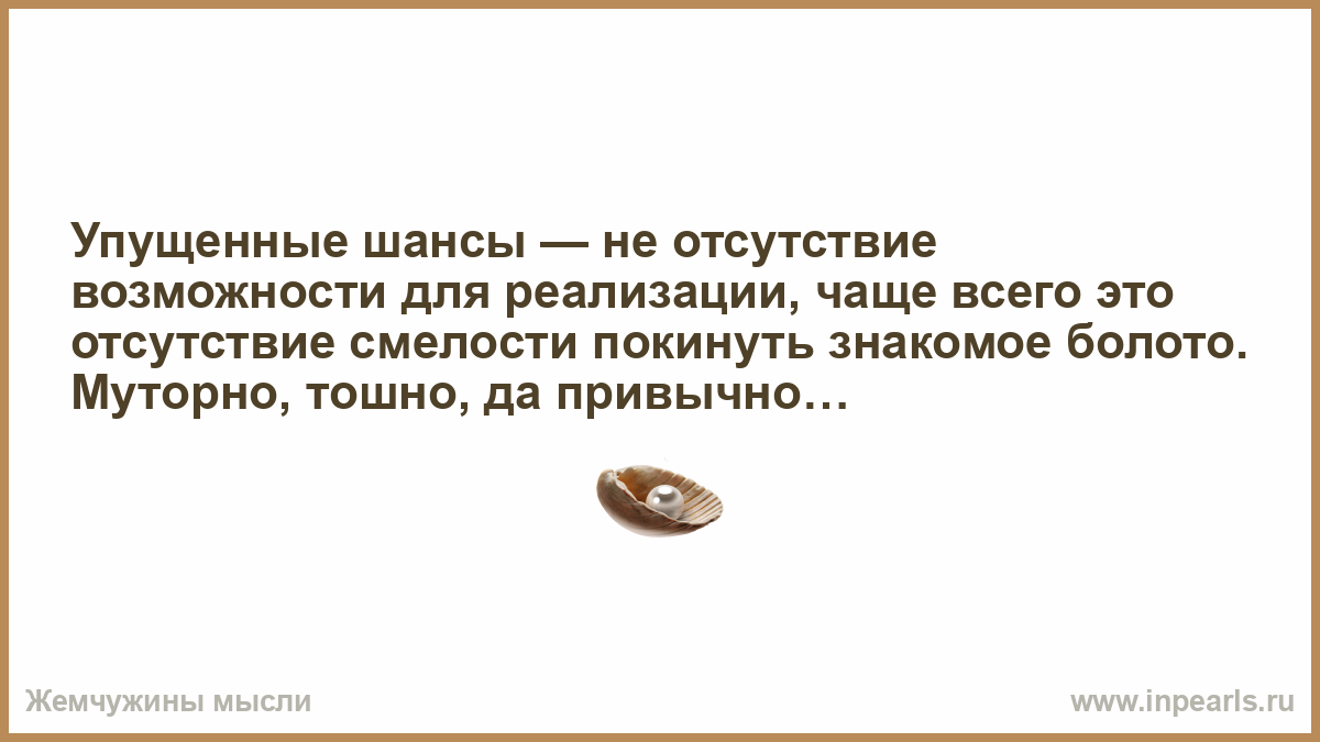 Каждому из нас дан шанс, упустив который, мы заменяем его чем-то второсортным.
