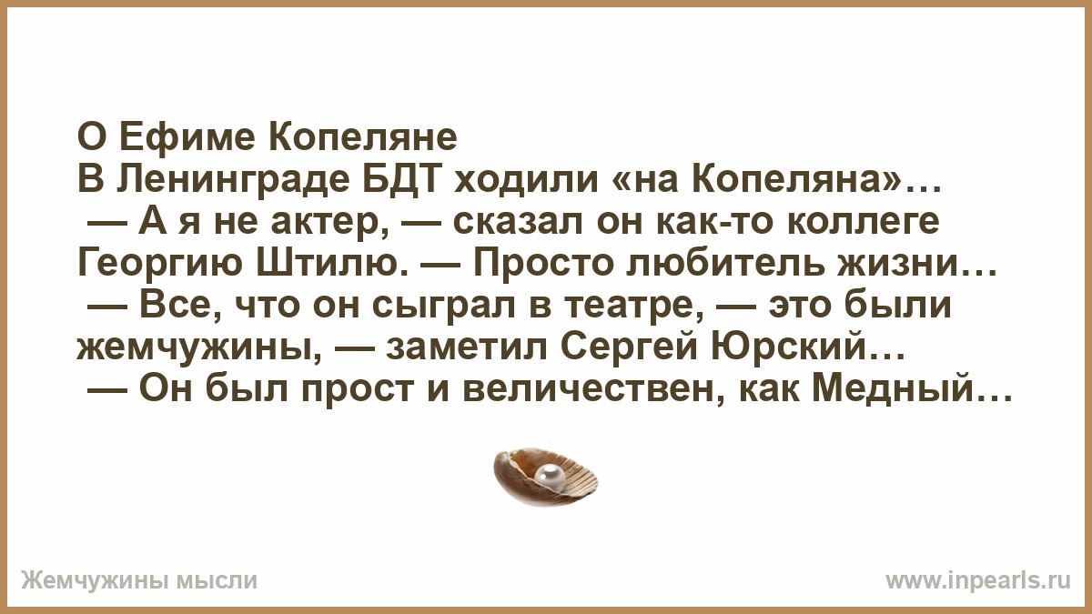 В Ленинграде БДТ ходили «на Копеляна»…