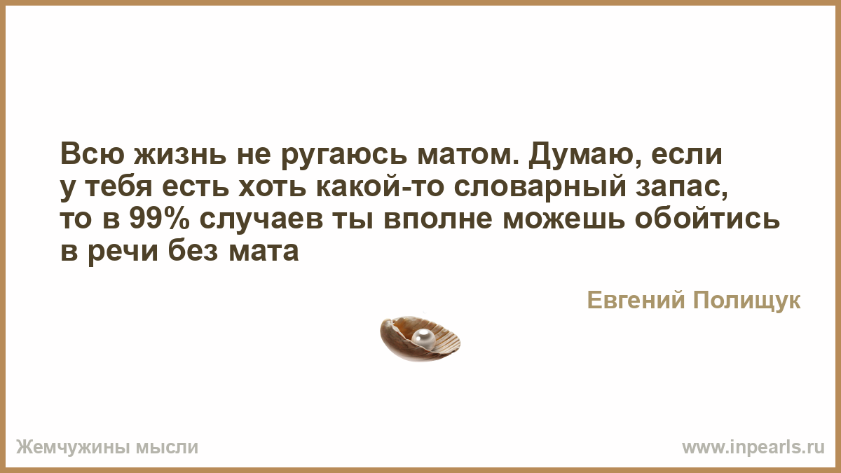 Мат — это как канцерогены… попробуйте обходиться без него хотя бы день и вы начнёте чувствовать вкус нормальных простых слов
