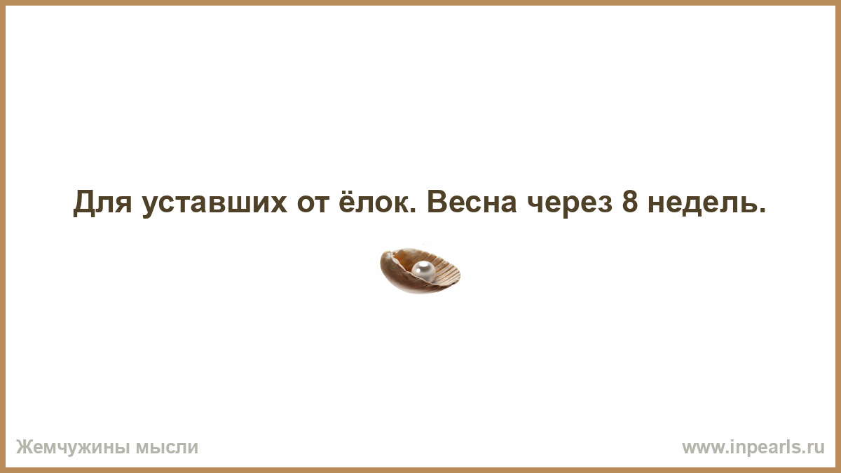 22−00 сижу на кухне чайком балуюсь, забегает жена и к холодильнику. Набрала две руки и бежать. Я ей вслед: «СКОРО ВЕСНА!». Вернулась положила всё обратно.