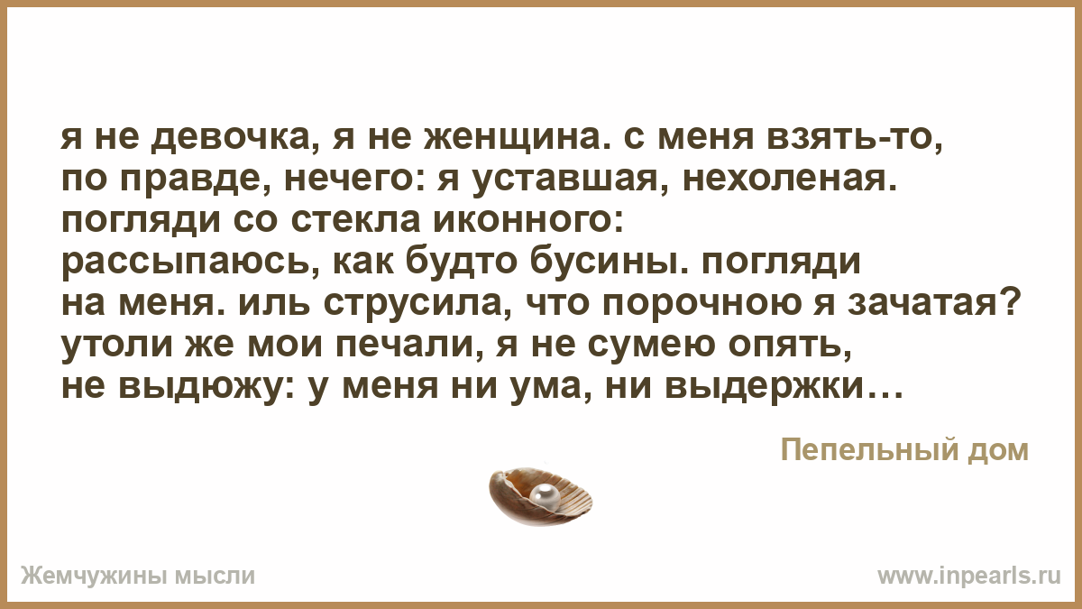 я не девочка, я не женщина. с меня взять-то, по правде, нечего: я уставшая, нехоленая. погляди со стекла иконного: