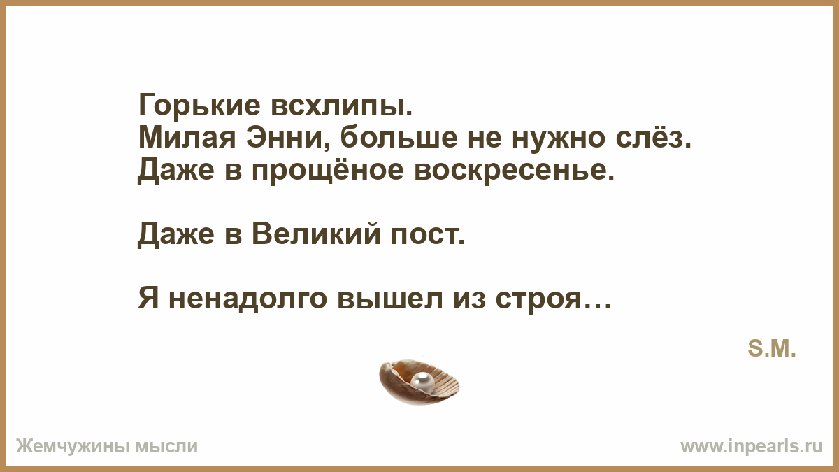 В жизни бывают минуты, когда в глазах нет слез, а в сердце — целое море
