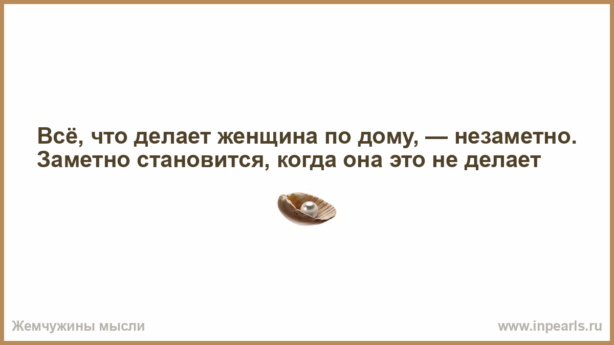 Всё, что делает женщина по дому, — незаметно. Заметно становится, когда она это не делает