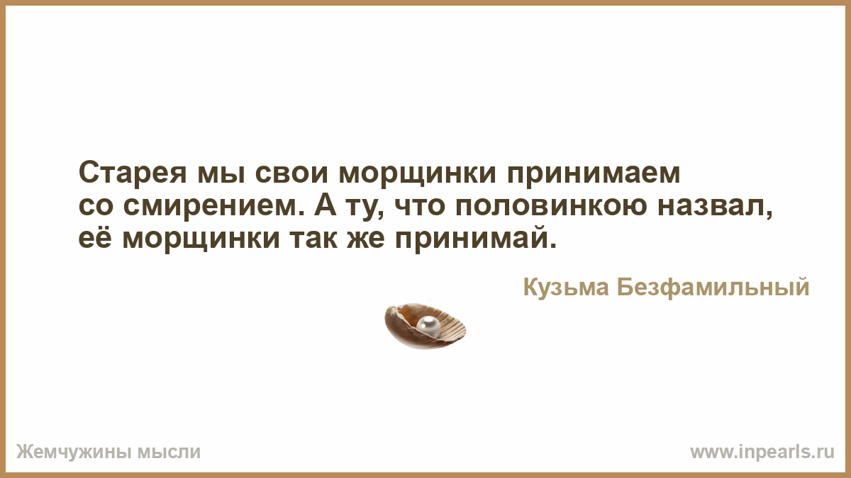 Старея мы свои морщинки принимаем со смирением. А ту, что половинкою назвал, её морщинки так же принимай.