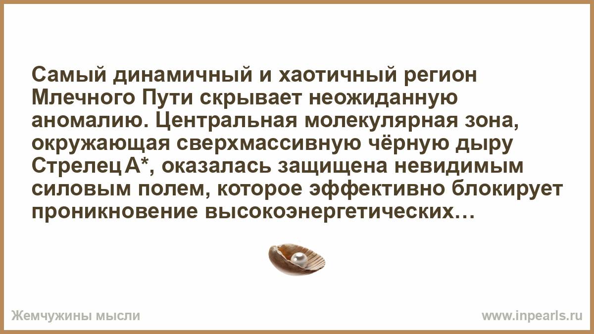 Самый динамичный и хаотичный регион Млечного Пути скрывает неожиданную аномалию. Центральная молекулярная зона, окружающая сверхмассивную чёрную дыру Стрелец А*, оказалась защищена невидимым силовым полем, которое эффективно блокирует проникновение высокоэнергетических космических лучей. Это открытие, сделанное с помощью данных космического гамма‑телескопа Fermi, ставит под сомнение прежнние представления о галактических ядрах и указывает на существование неизвестных ранее механизмов регулирования космического излучения.