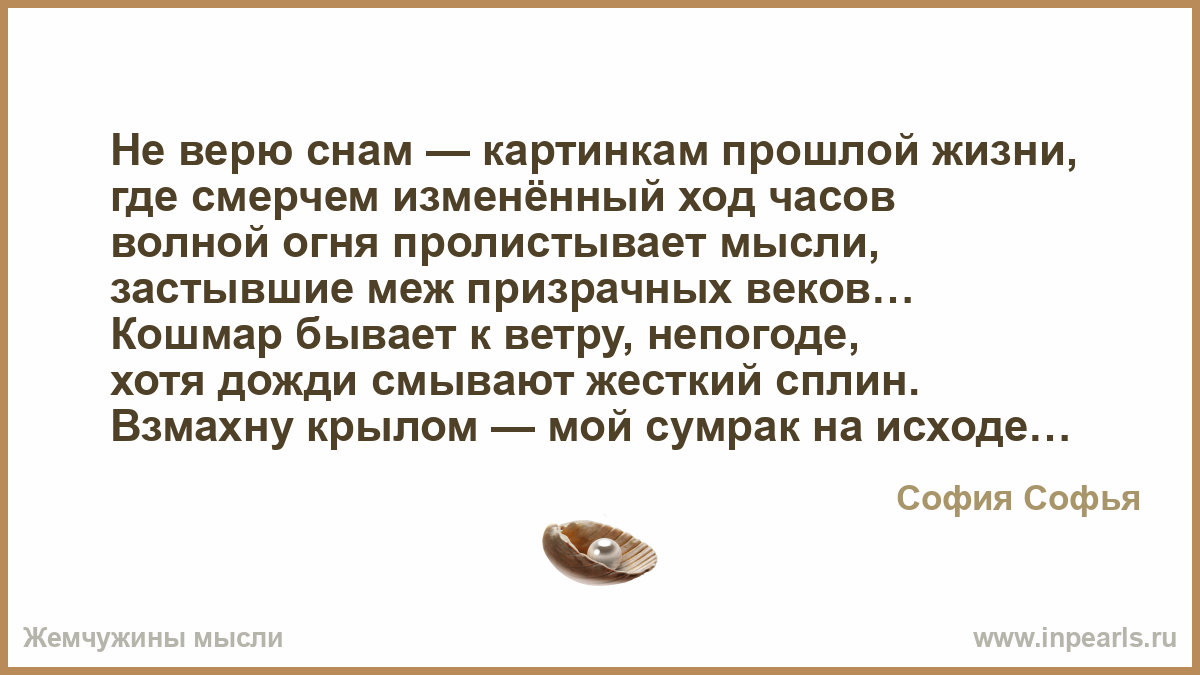Не верю снам — картинкам прошлой жизни,