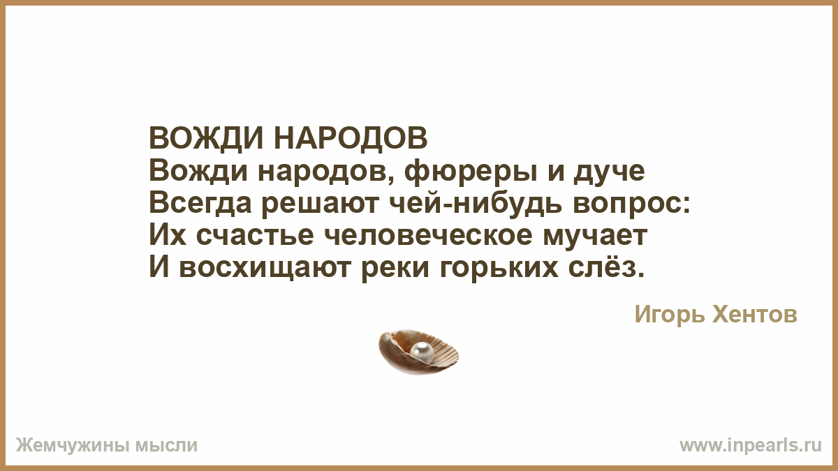 УРОД Вождь, что не ценит свой народ И, словно скот, шлёт на убой, Под мин и бомб истошный вой — Не вождь, а конченый урод.