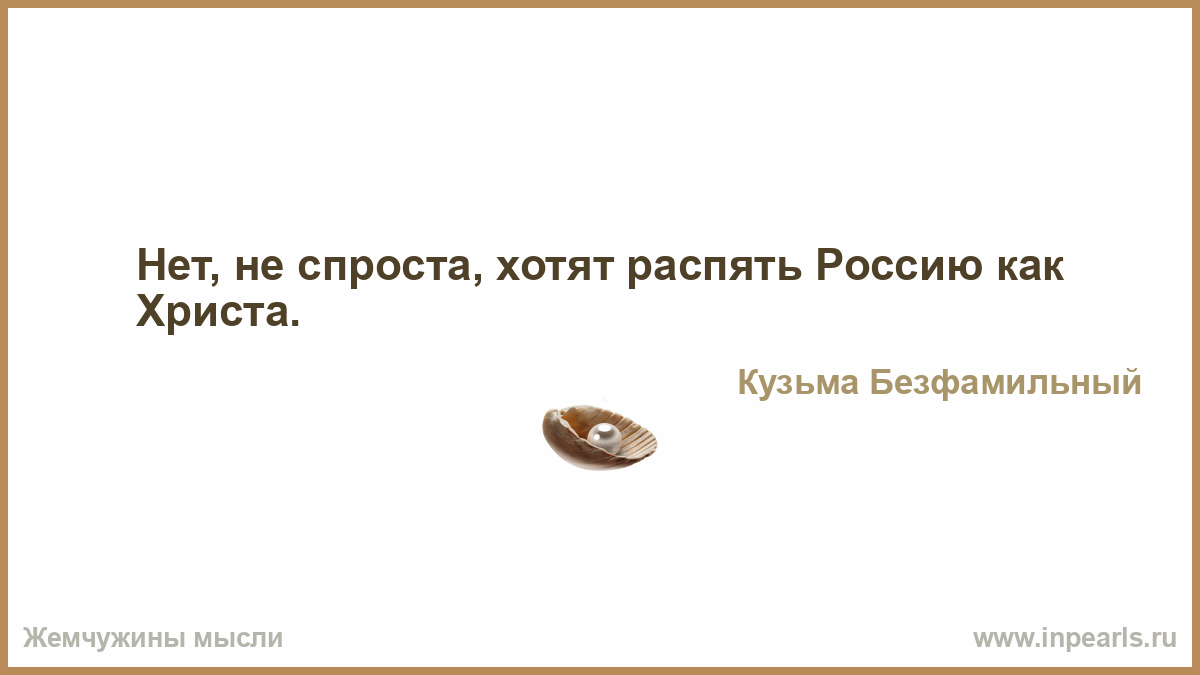 Россия на данный момент имеет все: союз братских коренных народов, свою испокон веков территорию, ресурсы и богатства, сильную власть, суперсовременное оружие и воинов готовых не щадя живота защитить все это. Но до людей, до основной массы пока что это не дошло, нужно время.
