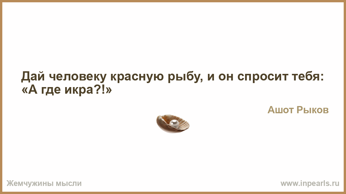 Дай человеку красную рыбу, и он спросит тебя: «А где икра?!»