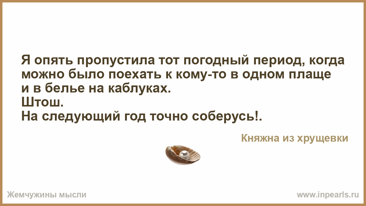 Я опять пропустила тот погодный период, когда можно было поехать к кому-то в одном плаще и в белье на каблуках.
