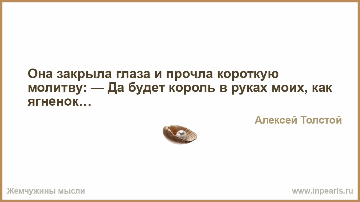 Она закрыла глаза и прочла короткую молитву: — Да будет король в руках моих, как ягненок…