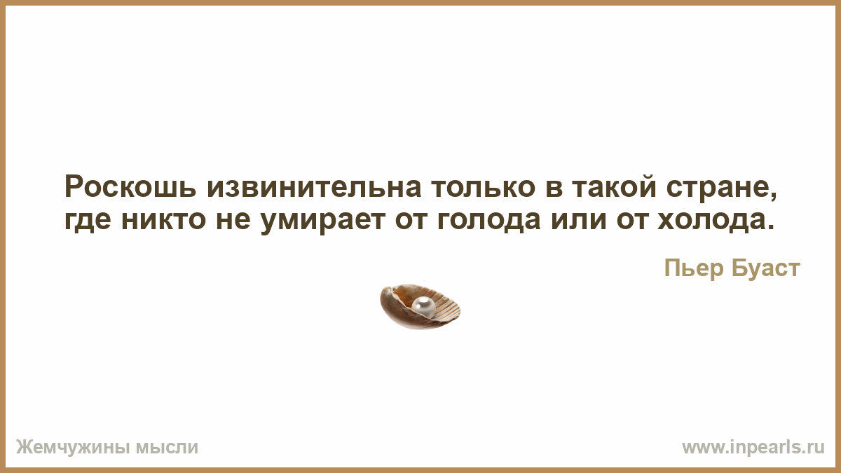 Роскошь извинительна только в такой стране, где никто не умирает от голода или от холода.