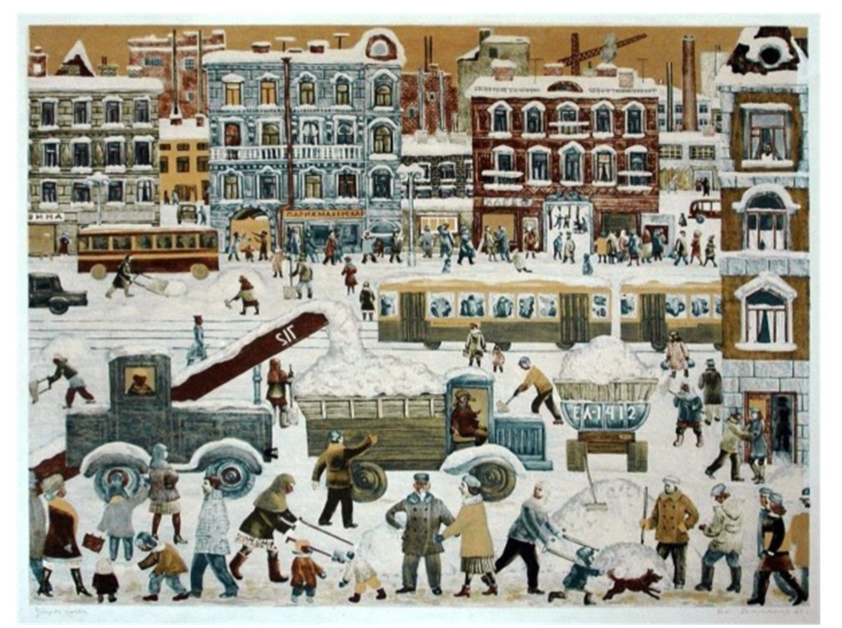 В.С.Вильнер - цветная литография "Уборка снега"