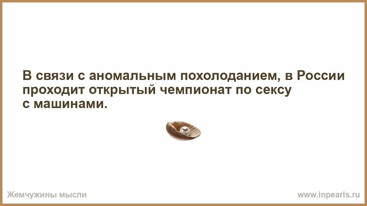 В связи с аномальным похолоданием, в России проходит открытый чемпионат по сексу с машинами.