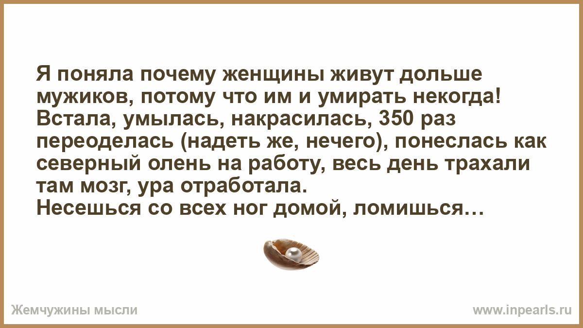 Я поняла почему женщины живут дольше мужиков, потому что им и умирать некогда!