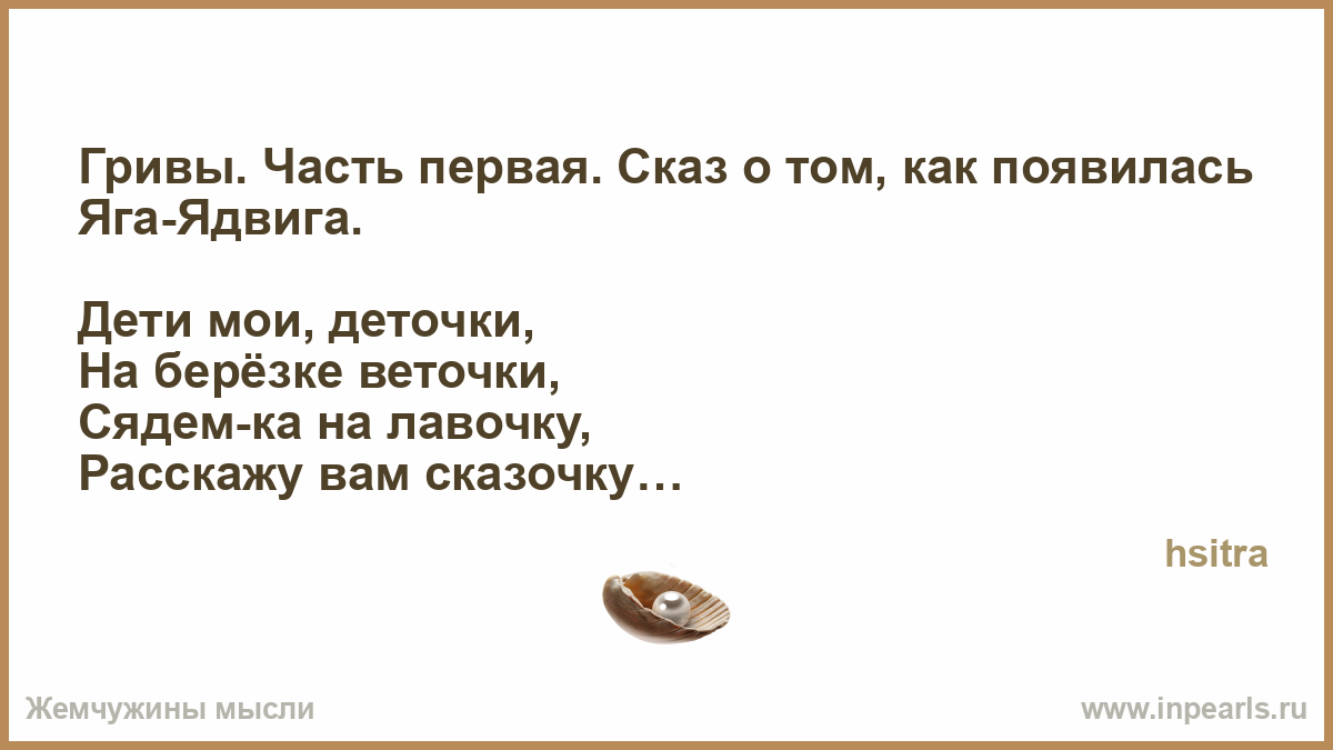 Гривы 1-2. Сказ о том, как появилась Яга-Ядвига