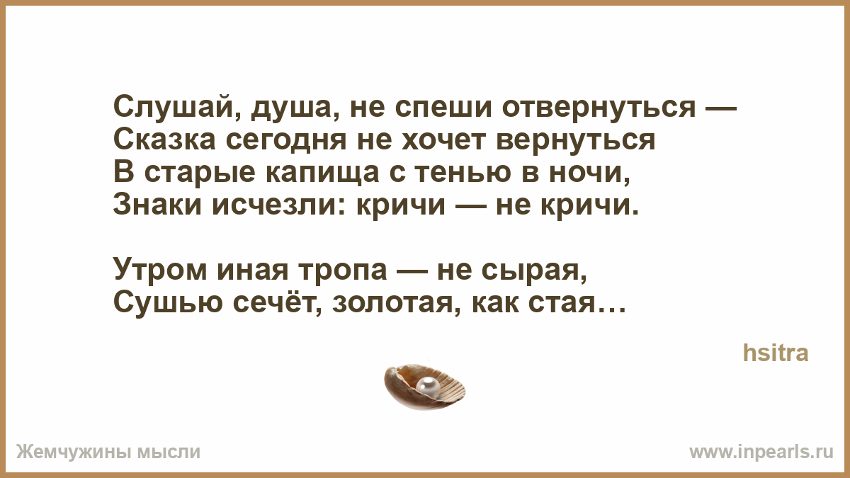 Слушай, душа, не спеши отвернуться —