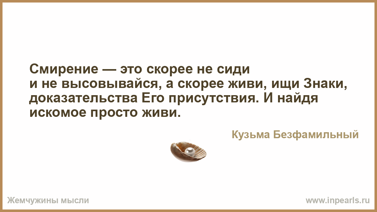 Смирение — это скорее не сиди и не высовывайся, а скорее живи, ищи Знаки, доказательства Его присутствия. И найдя искомое просто живи.