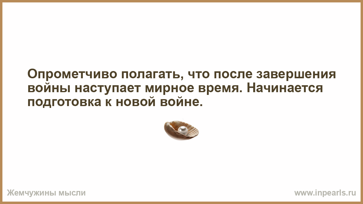 Опрометчиво полагать, что после завершения войны наступает мирное время. Начинается подготовка к новой войне.