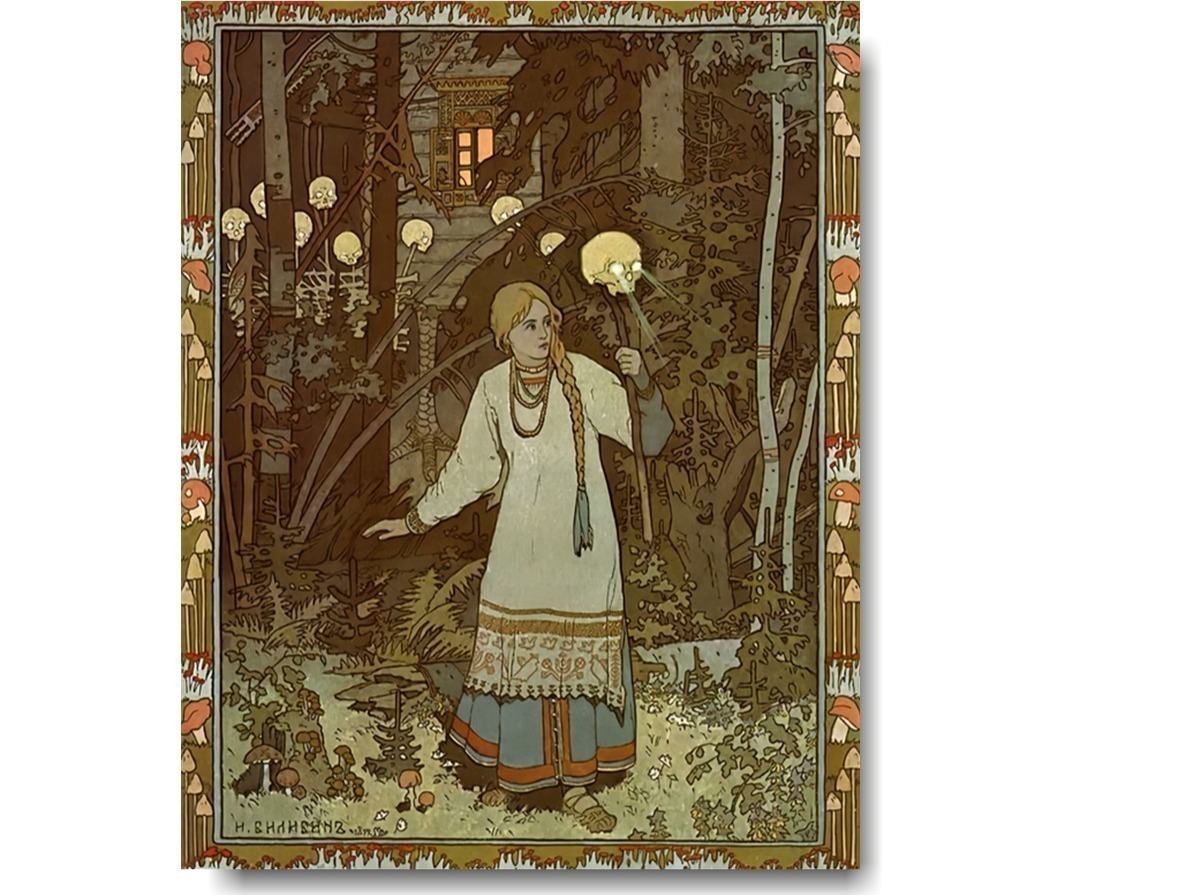 Вместо светильника Баба Яга дала ей в дар череп с горящими глазами.