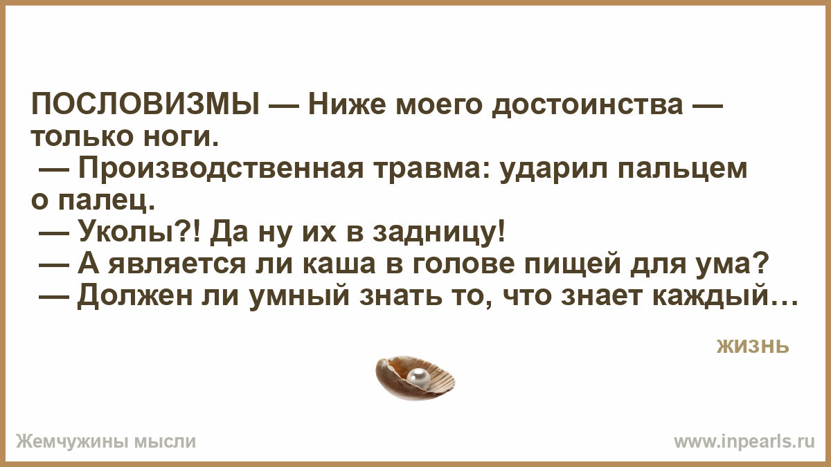 ПОСЛОВИЗМЫ — Ниже моего достоинства — только ноги.