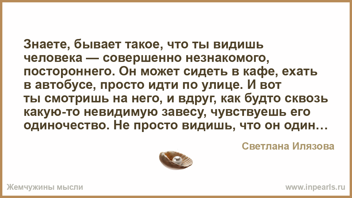 Знаете, бывает такое, что ты видишь человека — совершенно незнакомого, постороннего. Он может сидеть в кафе, ехать в автобусе, просто идти по улице. И вот ты смотришь на него, и вдруг, как будто сквозь какую-то невидимую завесу, чувствуешь его одиночество. Не просто видишь, что он один, а именно ощущаешь эту тяжесть, эту пустоту, которая, кажется, окружает его.