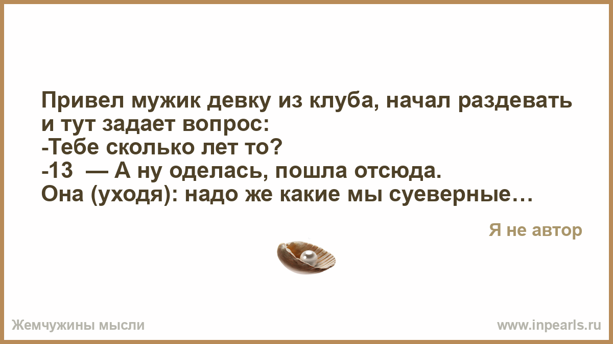 Возврощаясь домой поздно ночью после хорошей пьянки с чекушкой водки в заднем кармане джинсов, мужик падает на задницу, разбивает чекушку и тем самым режет себе «пятую точку». Прийдя домой он смотря в зеркало заклеивает раны лейкопластырем. Утром его будет жена суровым голосом и говорит ему: