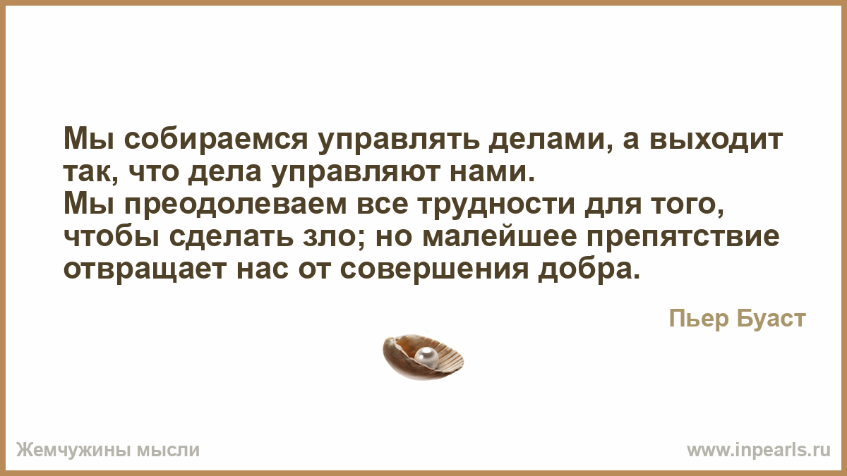 Мы собираемся управлять делами, а выходит так, что дела управляют нами. Мы преодолеваем все трудности для того, чтобы сделать зло; но малейшее препятствие отвращает нас от совершения добра.