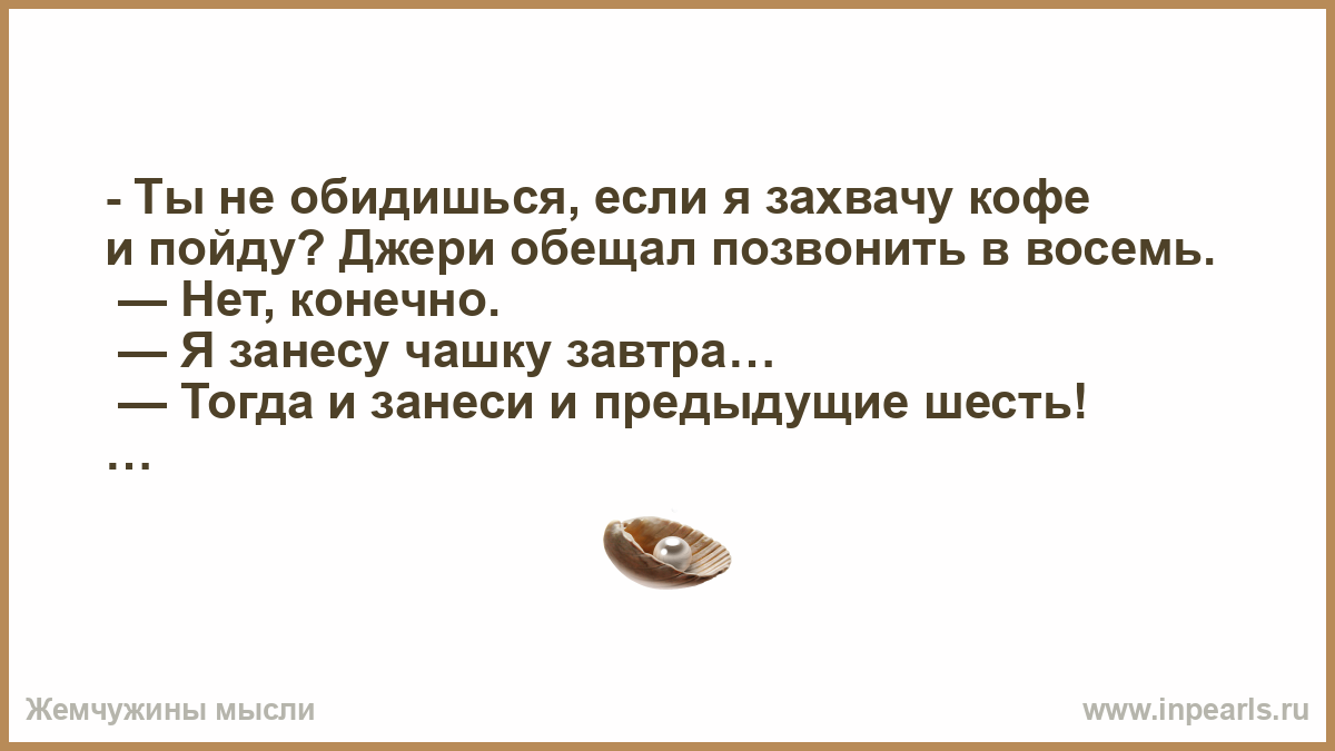 - Ты не обидишься, если я захвачу кофе и пойду? Джери обещал позвонить в восемь.