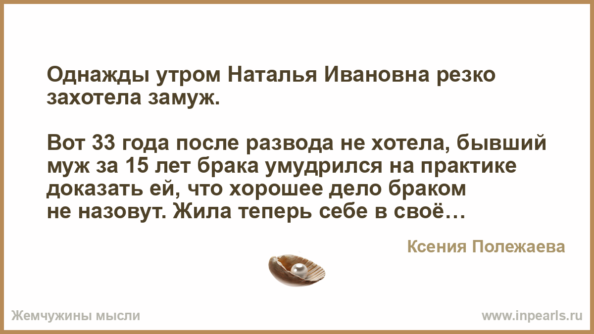 Однажды утром Наталья Ивановна резко захотела замуж.
