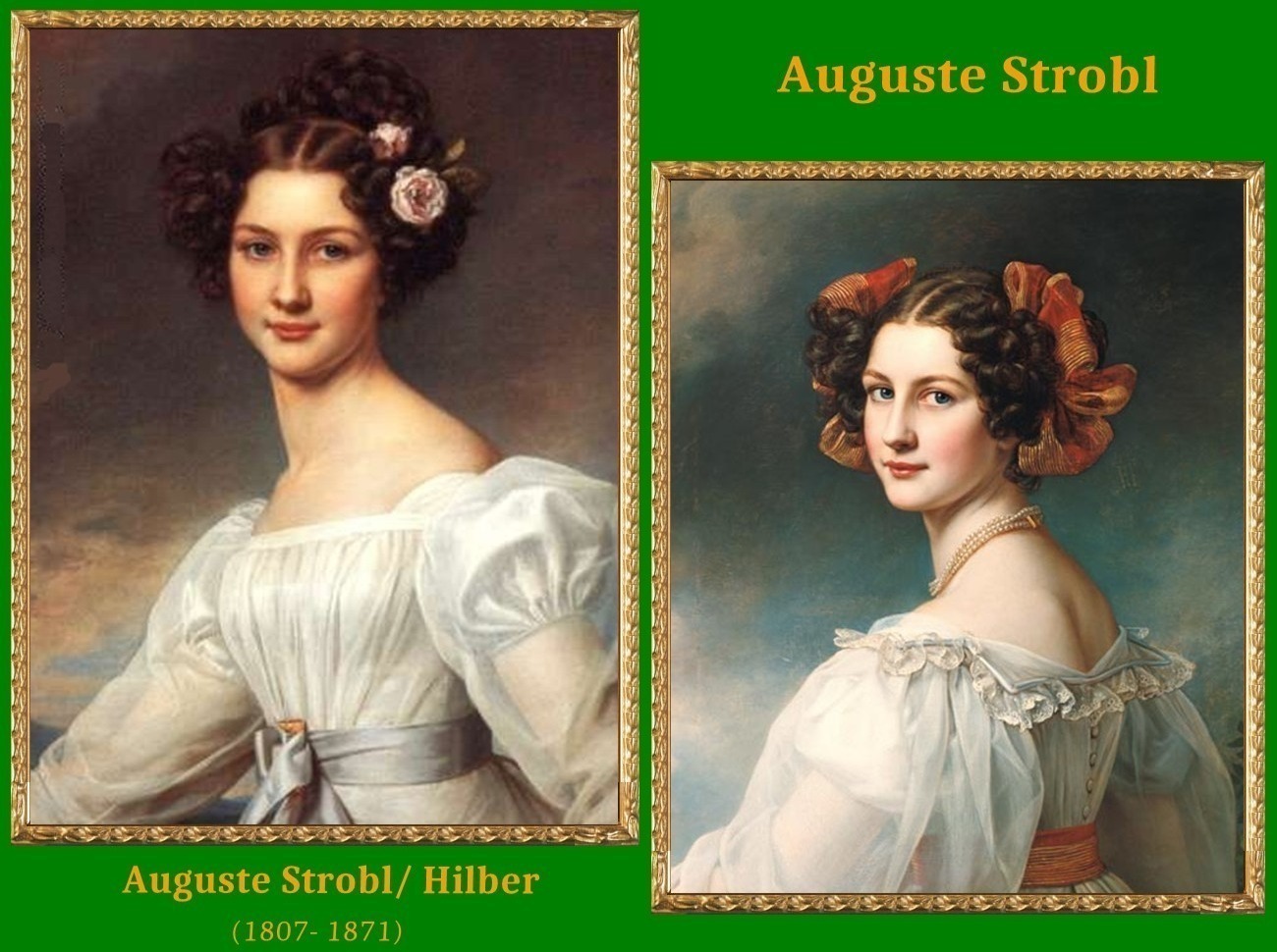 Галерея красавиц (Schönheitengalerie) - серия из 36 портретов красивых женщин была выполнена Йозефом Штилером по заказу короля Людвига I для резиденции дворца Нимфенбург.