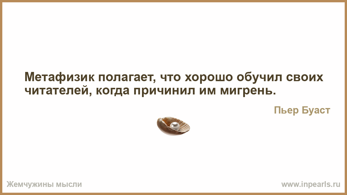 Метафизик полагает, что хорошо обучил своих читателей, когда причинил им мигрень.