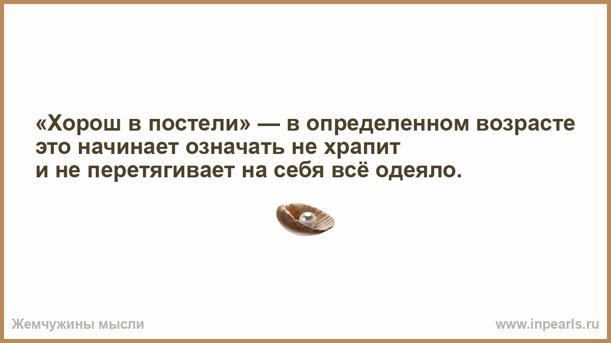 «Хорош в постели» — в определенном возрасте это начинает означать не храпит и не перетягивает на себя всё одеяло.