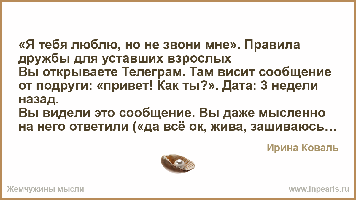 «Видела, но не отписала». В новом этикете «прочитанное сообщение» без ответа — это не игнор. Это значит: «я прочитала, я приняла информацию, но у меня сейчас нет эмоционального ресурса на полноценный ответ. Отпишусь, когда оживу». И мы не обижаемся. Потому что сами такие.