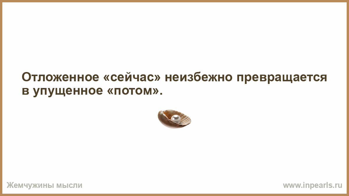 Отложенное «сейчас» неизбежно превращается в упущенное «потом».
