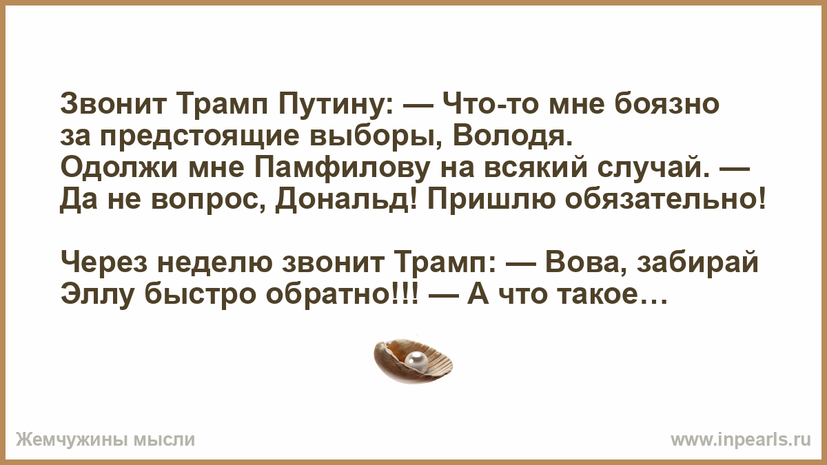 Одолжи мне Памфилову на всякий случай. — Да не вопрос, Дональд! Пришлю обязательно!
