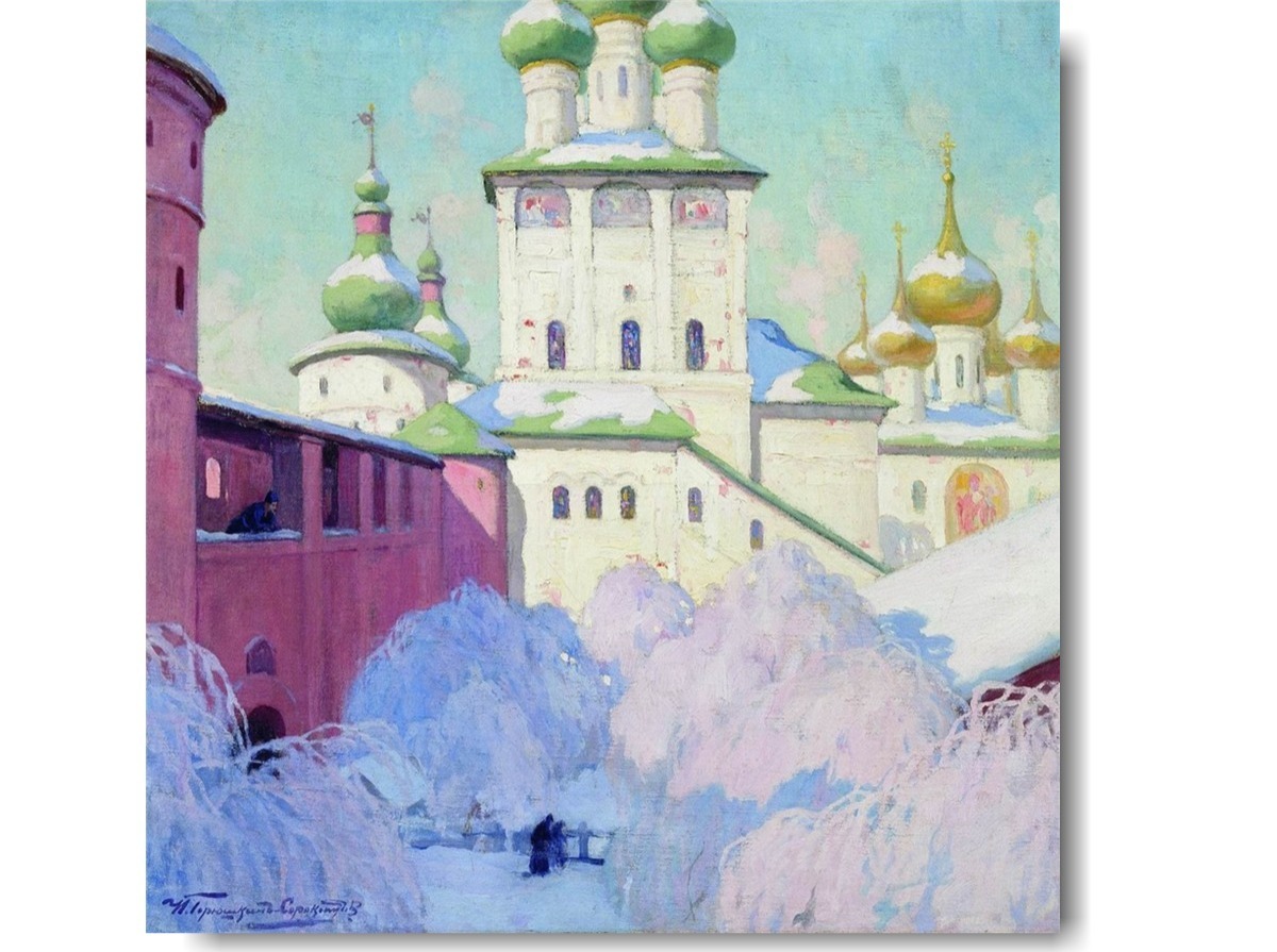 Картина Ивана Силовича Горюшкина-Сорокопудова «Зима. Ростовский Кремль» передаёт поэтичный и торжественный образ древнего русского города в зимнюю пору.