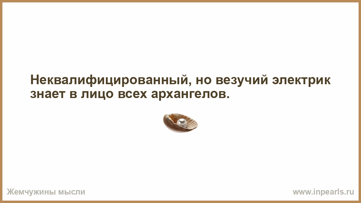 Неквалифицированный, но везучий электрик знает в лицо всех архангелов.