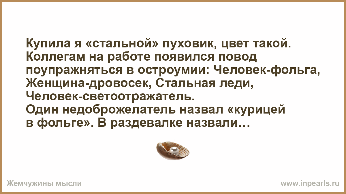 Купила я «стальной» пуховик, цвет такой.