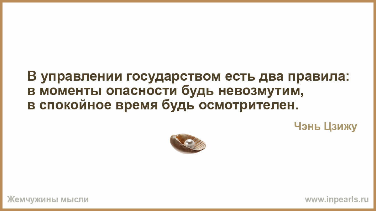 В управлении государством есть два правила: в моменты опасности будь невозмутим, в спокойное время будь осмотрителен.