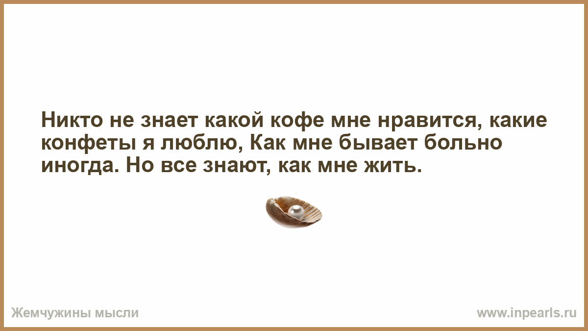 Никто не знает какой кофе мне нравится, какие конфеты я люблю, Как мне бывает больно иногда. Но все знают, как мне жить.