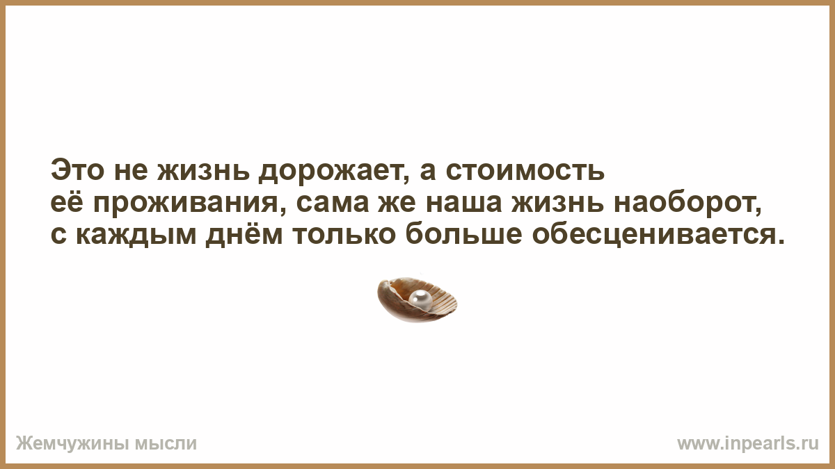 Это не жизнь дорожает, а стоимость её проживания, сама же наша жизнь наоборот, с каждым днём только больше обесценивается.