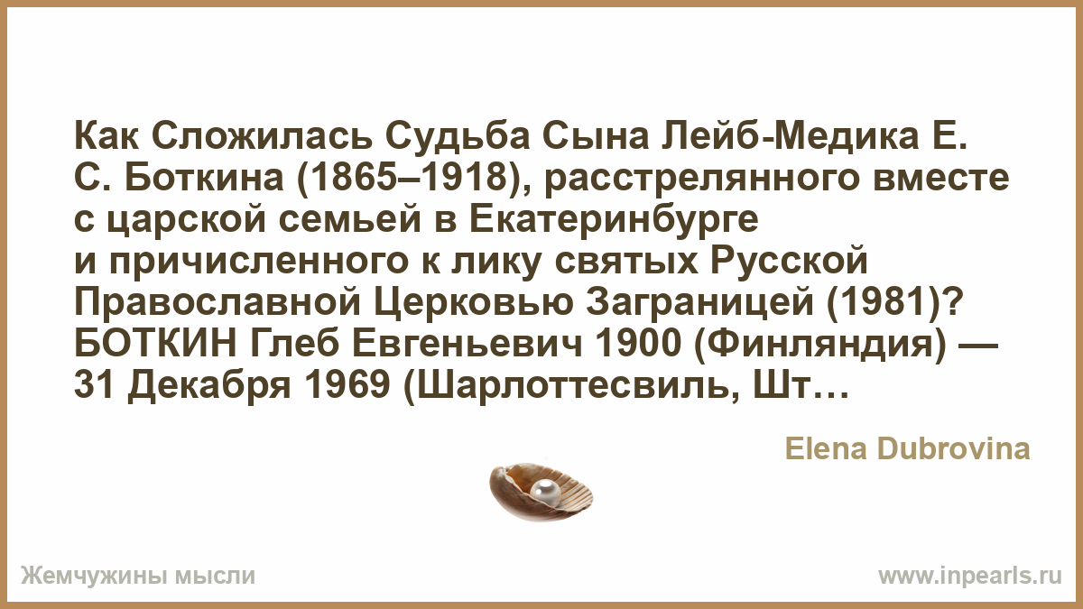 Как Сложилась Судьба Сына Лейб-Медика Е. С. Боткина (1865–1918), расстрелянного вместе с царской семьей в Екатеринбурге и причисленного к лику святых Русской Православной Церковью Заграницей (1981)?
